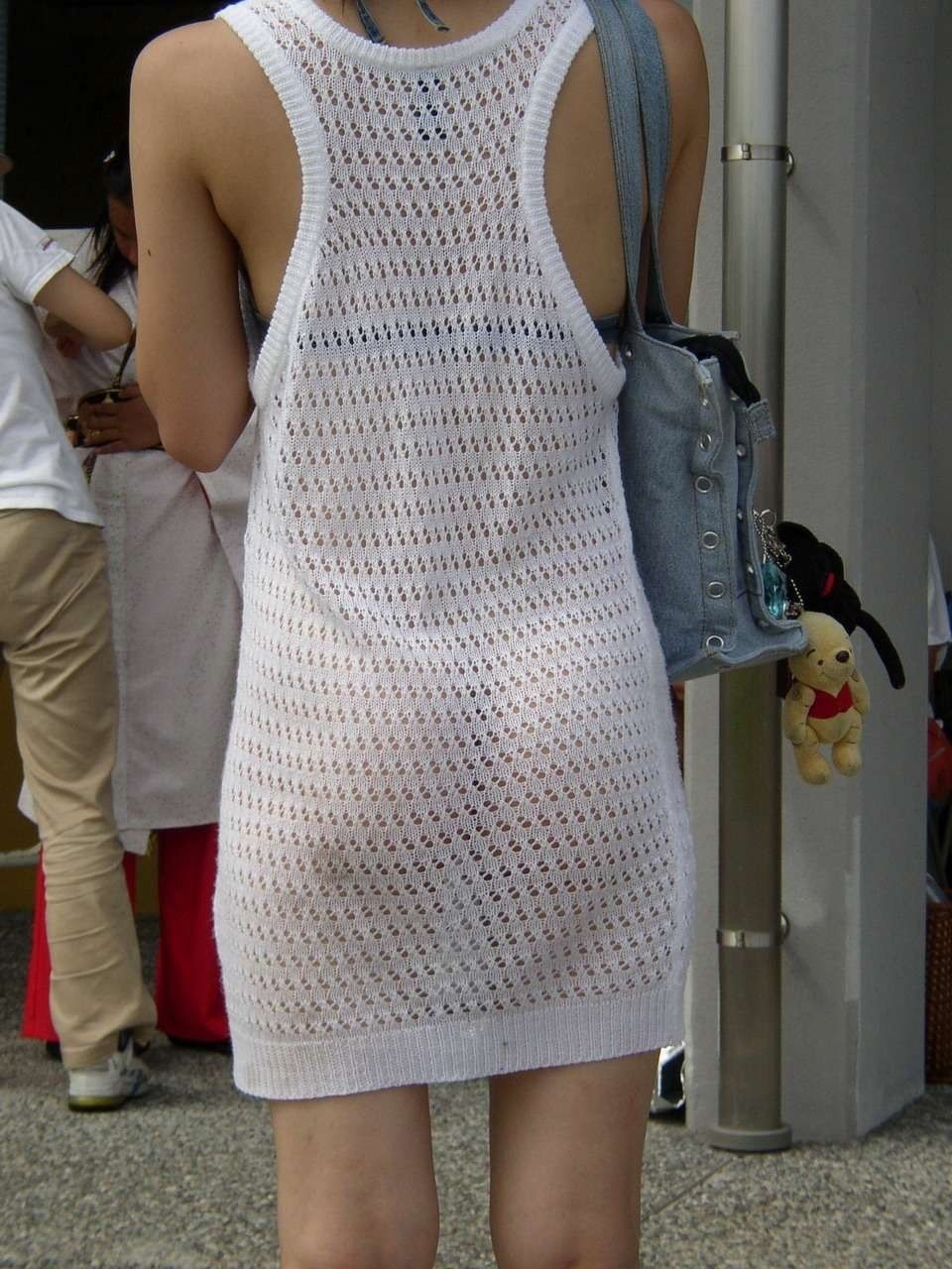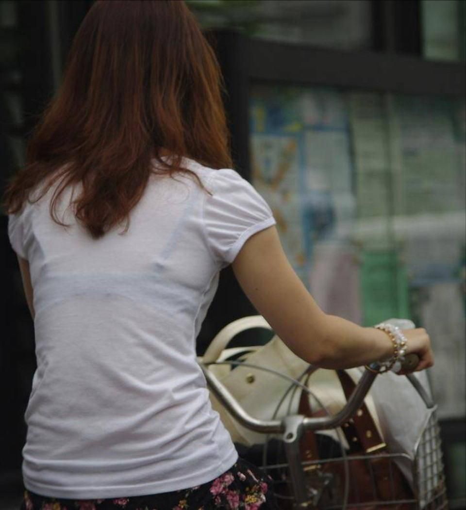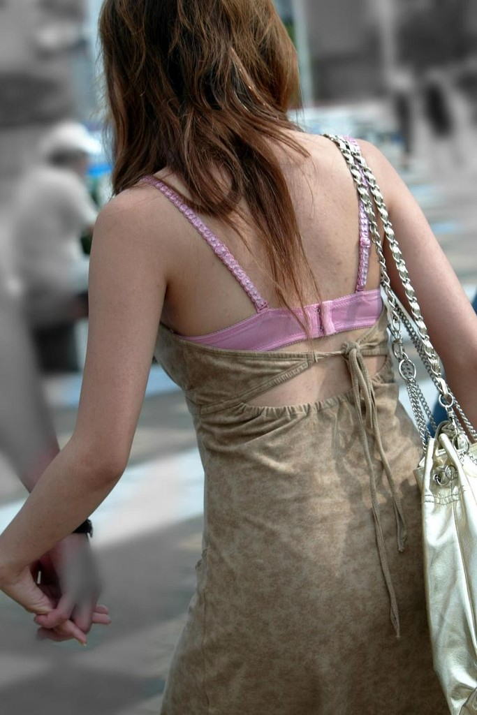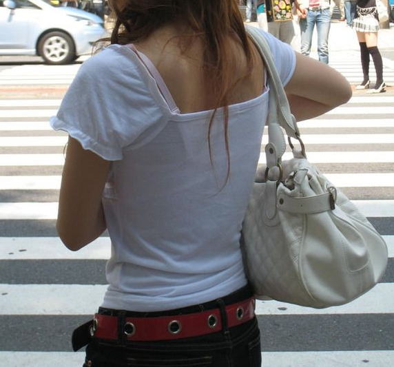 街中で透けブラやブラジャーチラ見えしてる女の子のエロ画像まとめ!