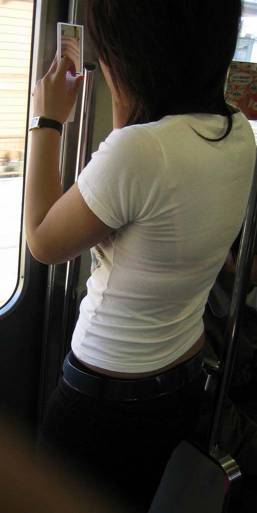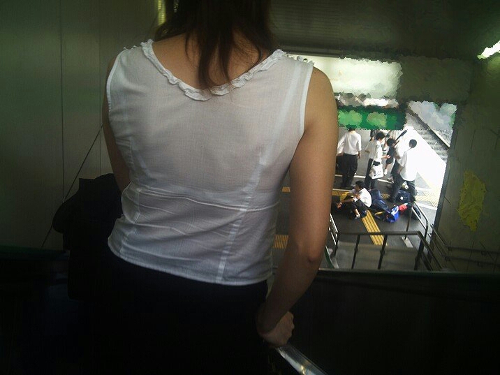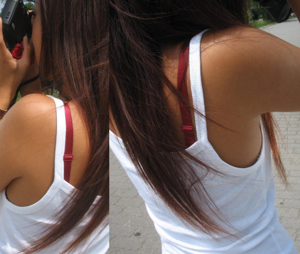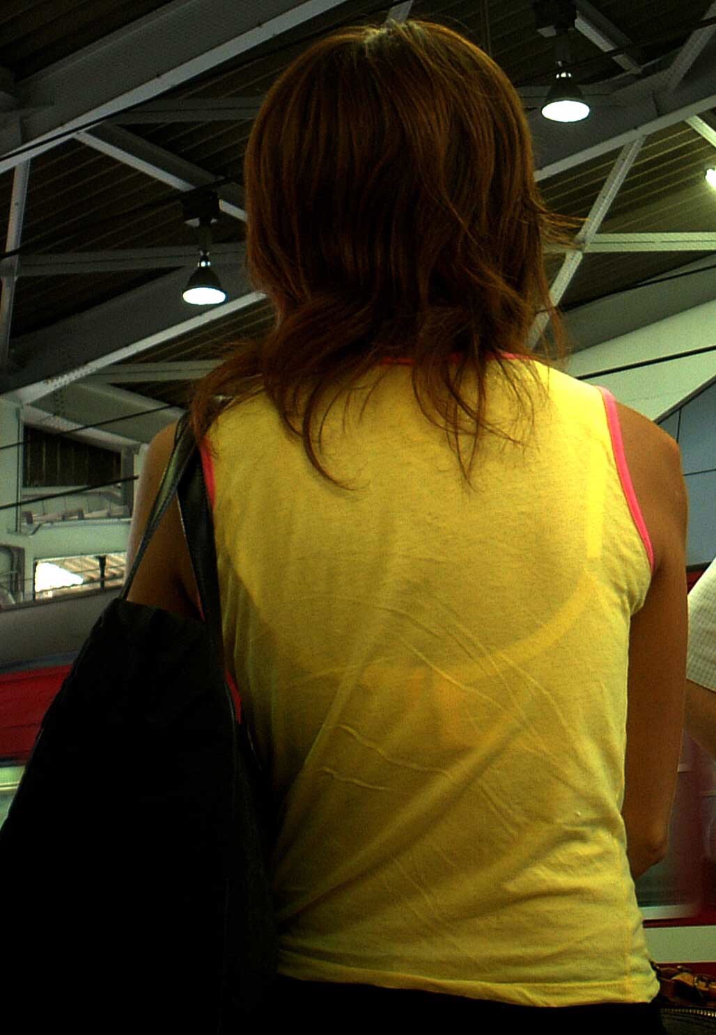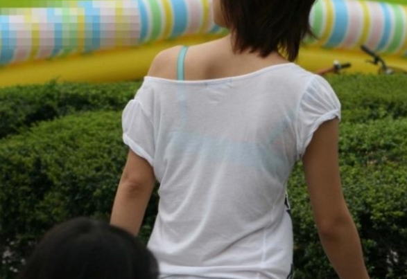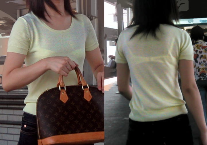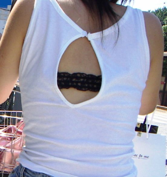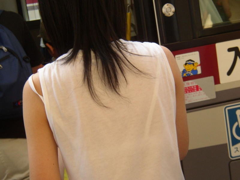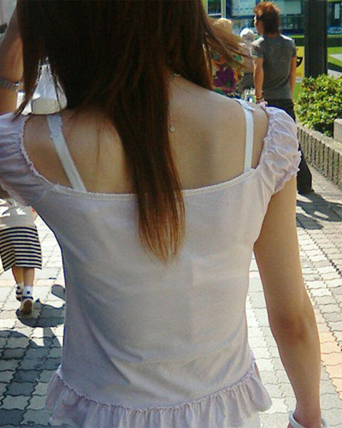 夏服の薄いデザインだとこういうのが見れちゃうのがラッキーですねw10月中旬になって急に寒くなったから見る機会が減りそうで鬱ですわw電車の中で同じ車両に必ず一人は透けブラしている女の子いますよね。実際本人は気付いているんだろうか。白地に色物ブラジャーとかだと普通に透けますよね。もしかして男を誘っているのかな?ということで今回は街中で透けブラやブラジャーチラ見えしてる女の子のエロ画像を集めてみました。