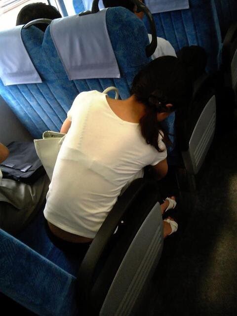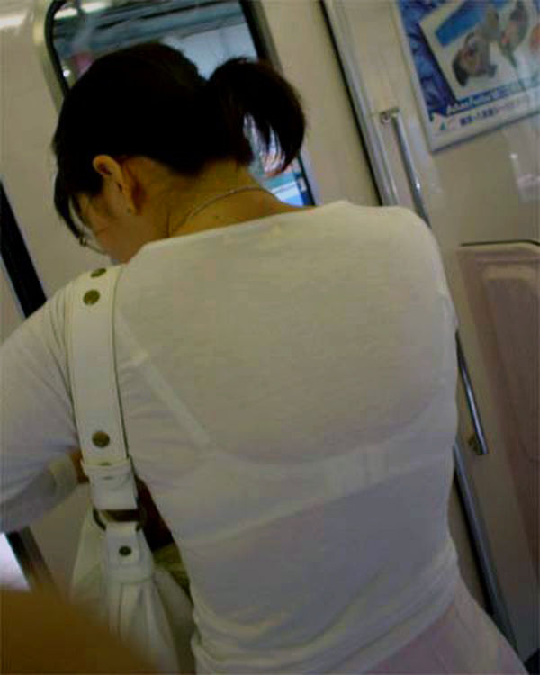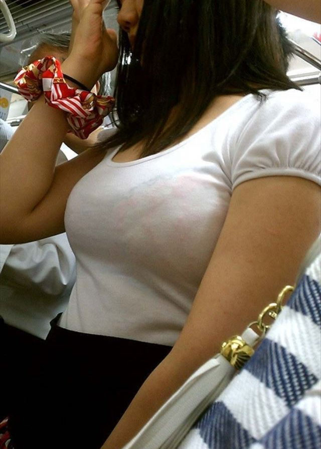 電車や駅内で透けブラしてる女の子を盗撮したエロ画像まとめ!