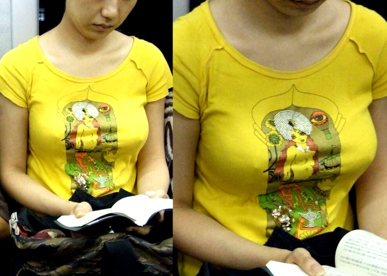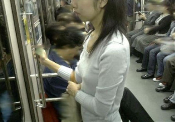 電車内なのにノーブラで乳首が透けて見えちゃってる女の子のエロ画像まとめ!